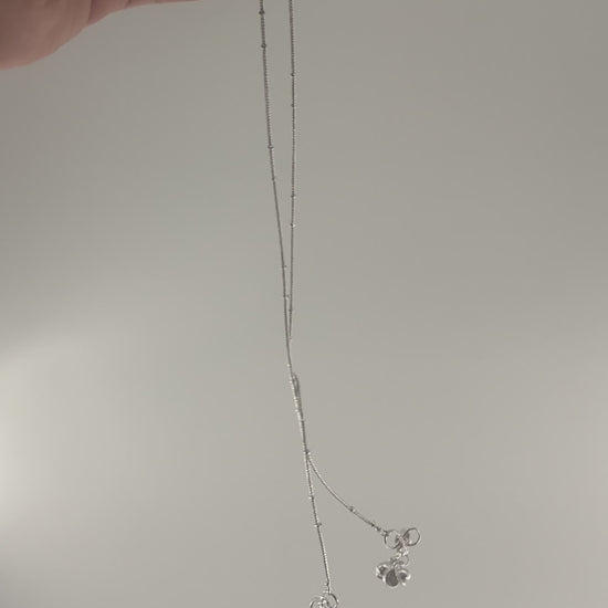 A simple silver anklet with cute little floral charms that jingle softly. Lightweight, pretty, and perfect for everyday wear.